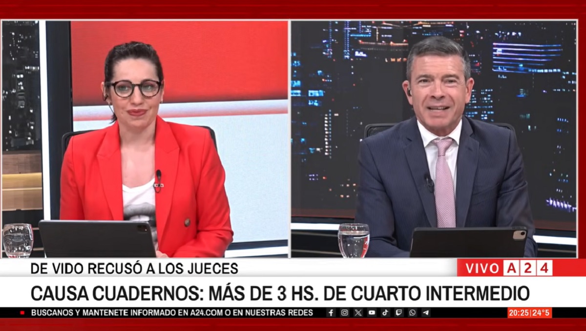Hora 20 noviembre 27, 2025Debate sobre la Causa Cuadernos y la reforma laboral El senador Luis Juez y la diputada Roxana Reyes analizan el desarrollo del juicio oral