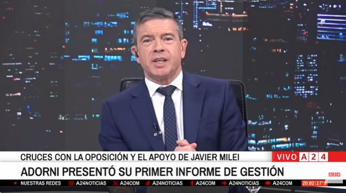 Quizá te interese Hora 20 abril 30, 2026 Adorni en el Congreso: cruces con la oposición y el apoyo de Milei El jefe de Gabinete presentó el miércoles su primer informe de gestión en el Congreso. Hora 17 abril 29, 2026 El termómetro de la calle: inflación y bajos salarios preocupan a la gente El comentario de Pablo Rossi. Hora 20 abril 29, 2026 Milei apuntó contra periodistas y empresarios En el pase con Eduardo Feinmann analizamos el discurso presidencia en una cena con empresarios. Hora 20 abril 28, 2026 Jorge Macri: “El kirchnerismo tiene un problema con la Ciudad” Dialogamos con el Jefe de Gobierno sobre todos los temas de la actualidad política porteña. Hora 17 abril 28, 2026 Colapinto homenajeó a Fangio en la Ciudad Se trató de un hito histórico, ya que fue el primer piloto argentino en manejar Hora 17 abril 23, 2026 Trata de personas digital Habla de una de las víctimas de "Argentina Castings".